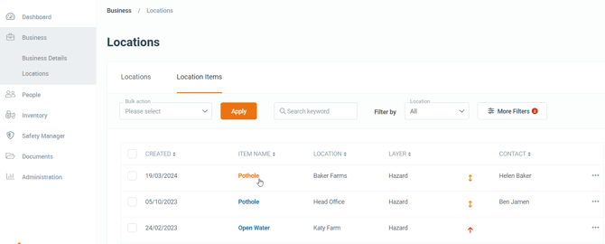 After Hazards or Items have been added to a Location, they can be viewed from your Location Maps. This includes seeing Hazards, Structures, Items and People.