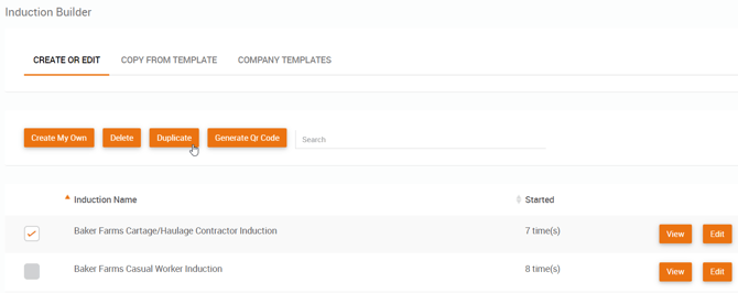 - Enter the new Induction name and click Save. The duplicate Induction can now be edited, see Editing Inductions.