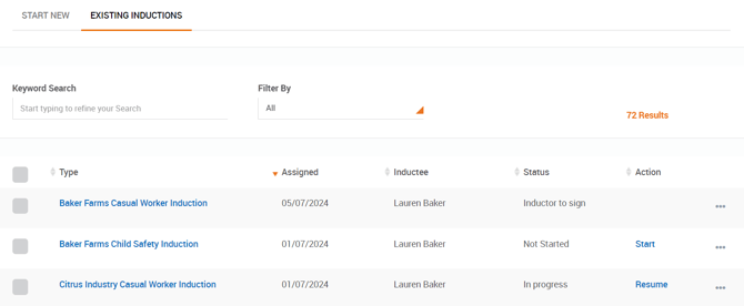 - From the left menu, select People > Start Induction and navigate to the Existing Inductions tab.