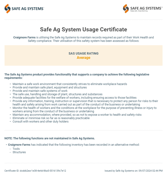 You may be able to use your Safety Rating and Compliance Assessment to negotiate a discount with your Insurer. You can download a Usage Certificate to provide evidence of your commitment to workplace safety.