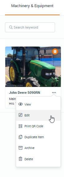 - In the left side menu, select Inventory > Machinery and Equipment or Structures or Tools