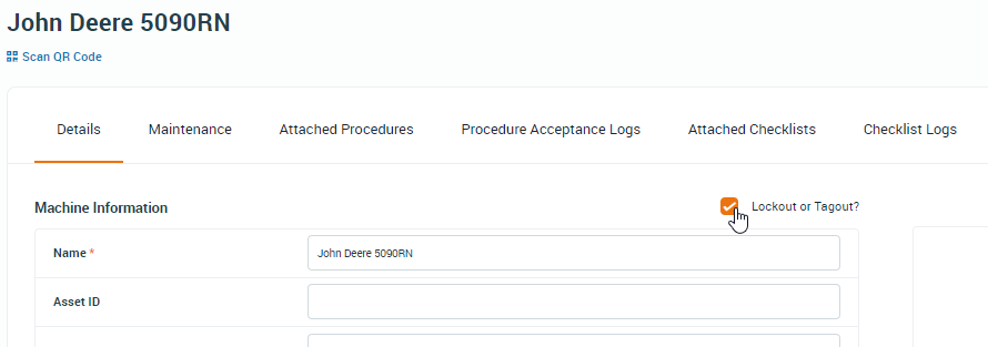 If a piece of equipment has been mechanically locked or tagged out due to being damaged or unsafe, the item can be locked out/tagged out in your Safe Ag System using the Lockout/Tagout option.