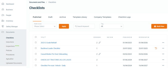 - Checklists can be created from a Safe Ag Systems template, or by creating your own.