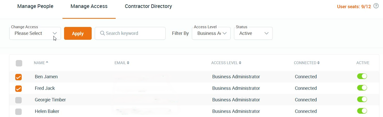 - Select the Access Level that you wish to apply to these users in Change Access. Full details of what each Access Level can do can be found in the following article: Understanding Access Levels.