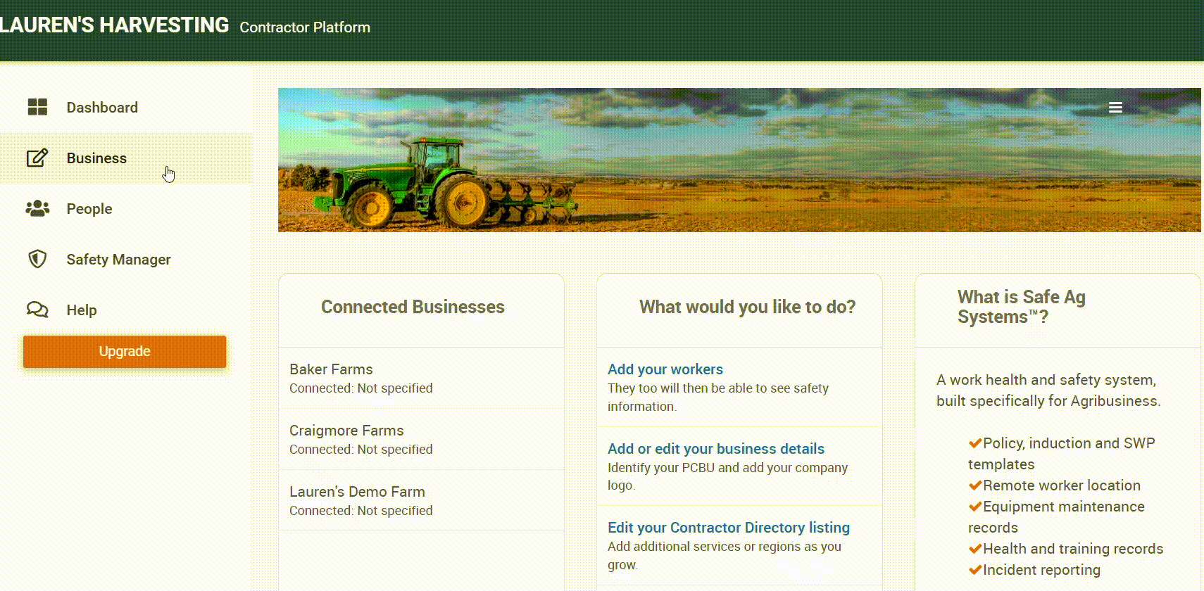 - If Show my Business in the Safe Ag Systems Contractor Directory is not ticked, businesses will not be able to connect with you.
